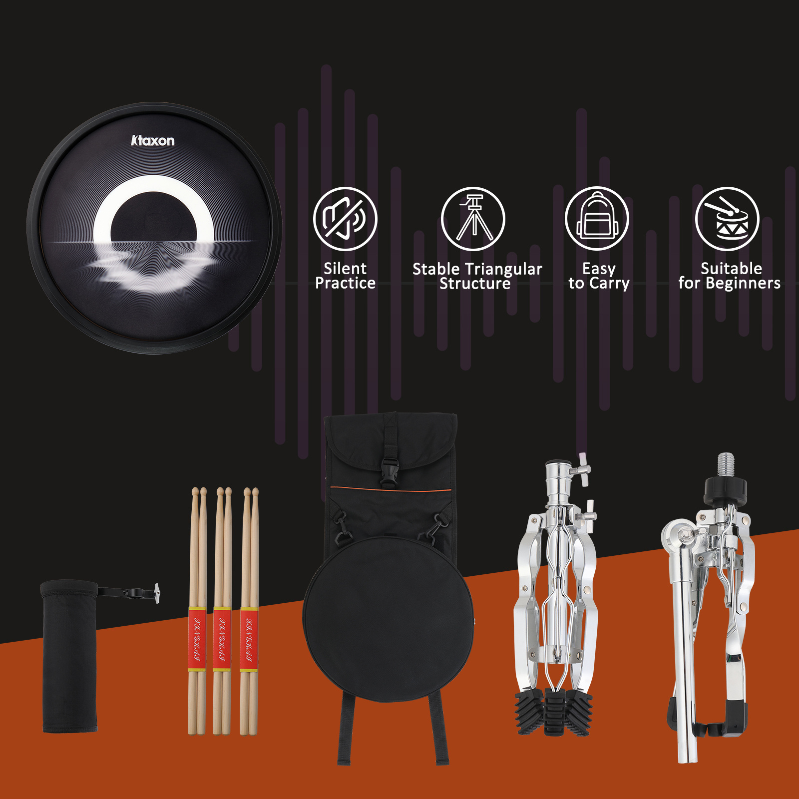 12in round silicone black practice drum with stand