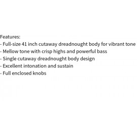 Cutaway Acoustic Guitar with Spruce Top Grape Hole Design Round Back & Adjustable Neck - Burlywood Finish 41- inch