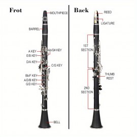 17 Key Beginner Clarinet Black with 2 Mouthpieces Connector for Students